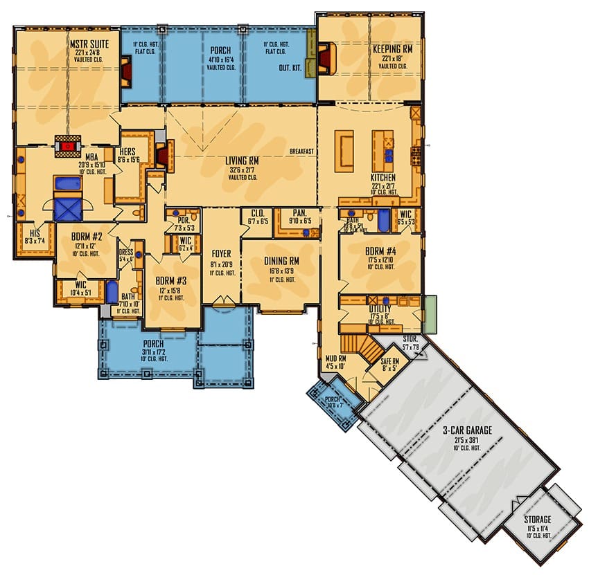 With 4 bedrooms, 3.5 baths, and room for 3 cars, this design takes Southern hospitality and packages it neatly into one incredible floor plan.