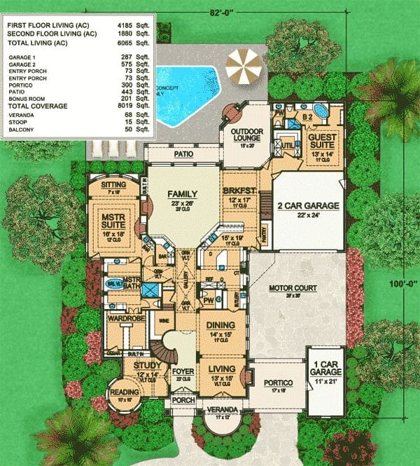 From the sweeping staircases to the circular reading nook, each detail of the floor plan is carefully thought out to make life elegant, comfortable, and just a little bit fun.