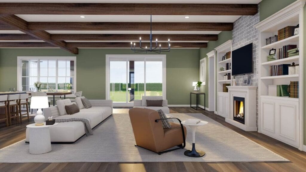 This kind of layout turns daily living into something truly enjoyable, especially when every detail—from the fireplace to the lighting—is perfectly placed for both comfort and style.