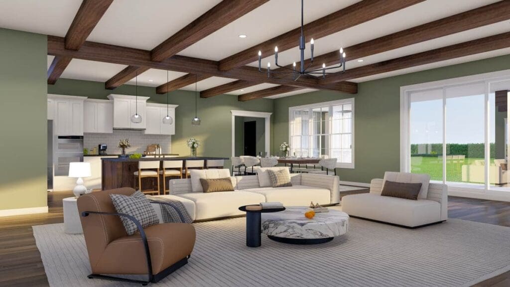 The soaring ceilings and large windows flood the room with light, while the open-concept layout keeps everyone together.