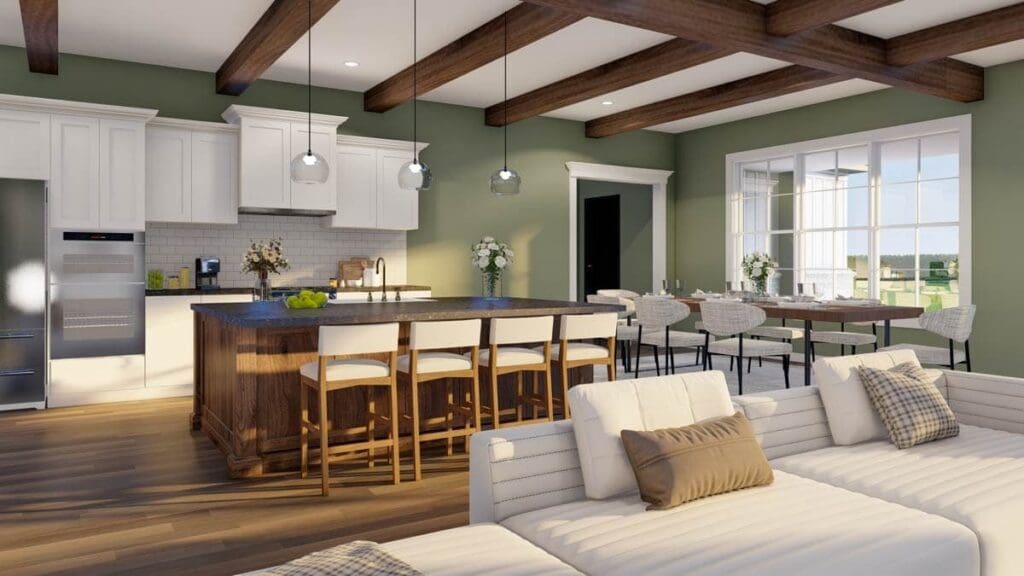 The connection between the great room, kitchen, and breakfast nook creates an effortless flow.