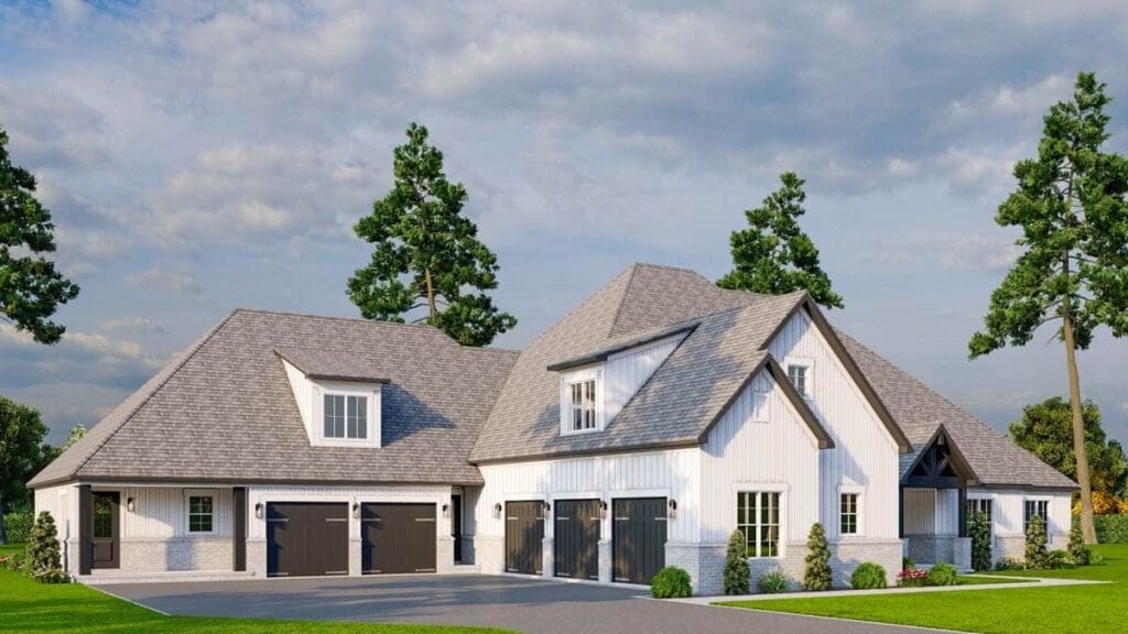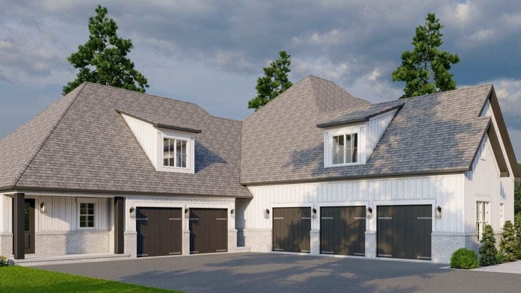 The garage also contributes to the home’s overall curb appeal, complementing the European-inspired architecture with elegant proportions and symmetry.