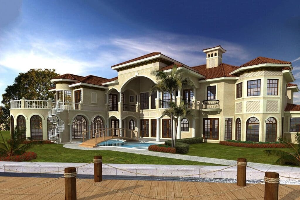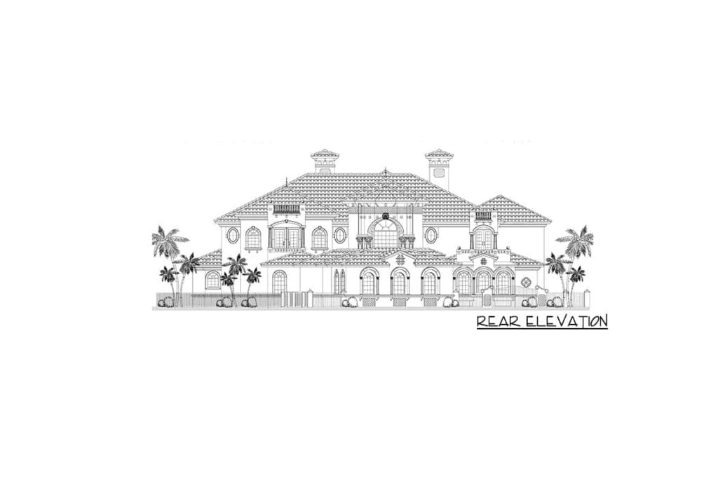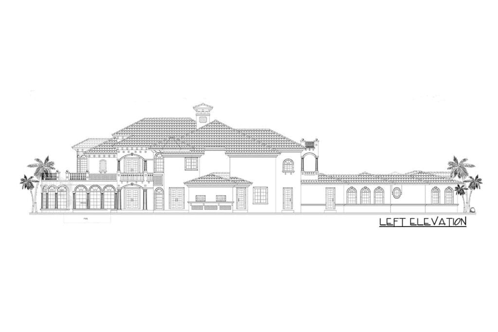 This 10,591-square-foot Mediterranean waterfront home with seven bedrooms, five and a half plus baths, a guest cottage, and a three-car garage is a floor plan that checks every box.