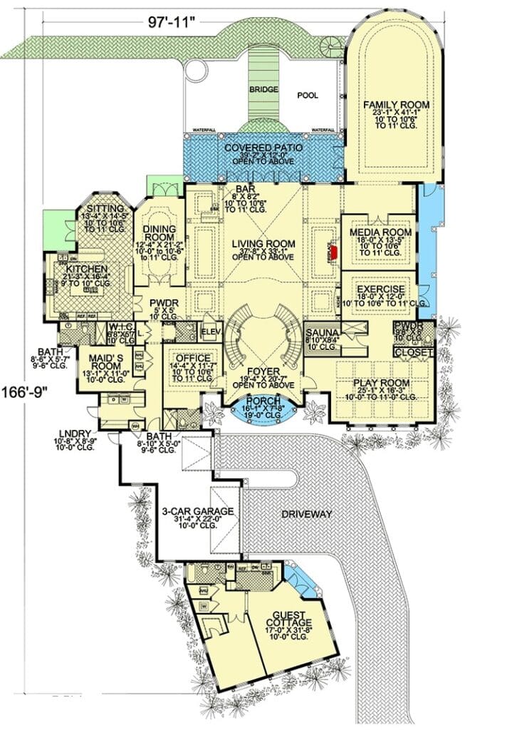 2-Story 7-Bedroom Traditional Mediterranean Home with Guest Cottage (Floor Plan)