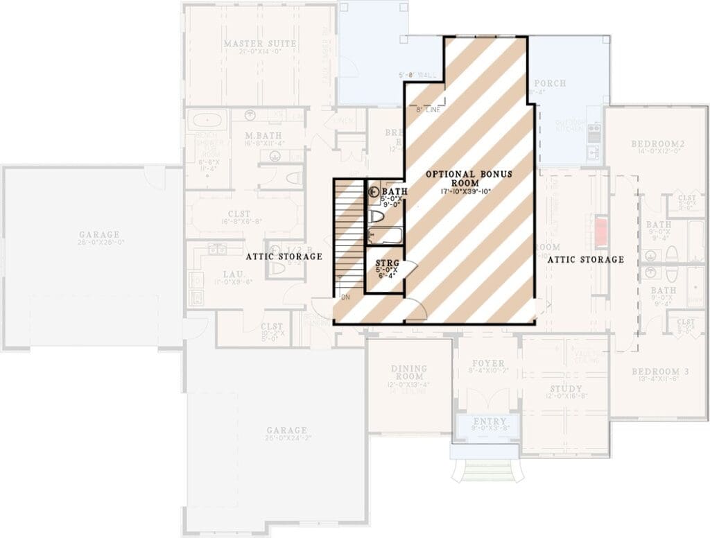 One of my favorite parts of this house plan is the optionally finished bonus room.