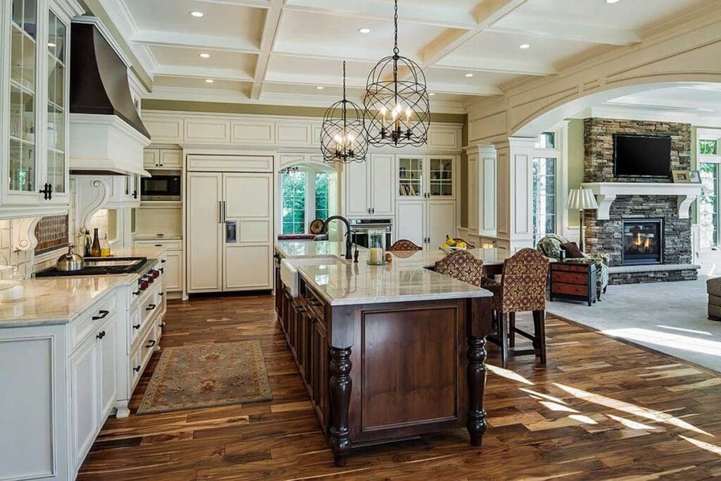 Ah, the kitchen — the heart of every home, and in this case, a total showstopper. You’ll find a T-shaped island with the sink facing the family room fireplace, meaning you can cook dinner and keep an eye on the game or the kids’ latest “science experiment.”