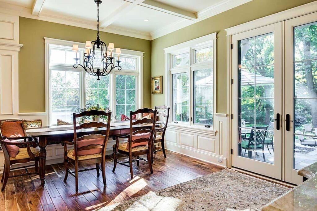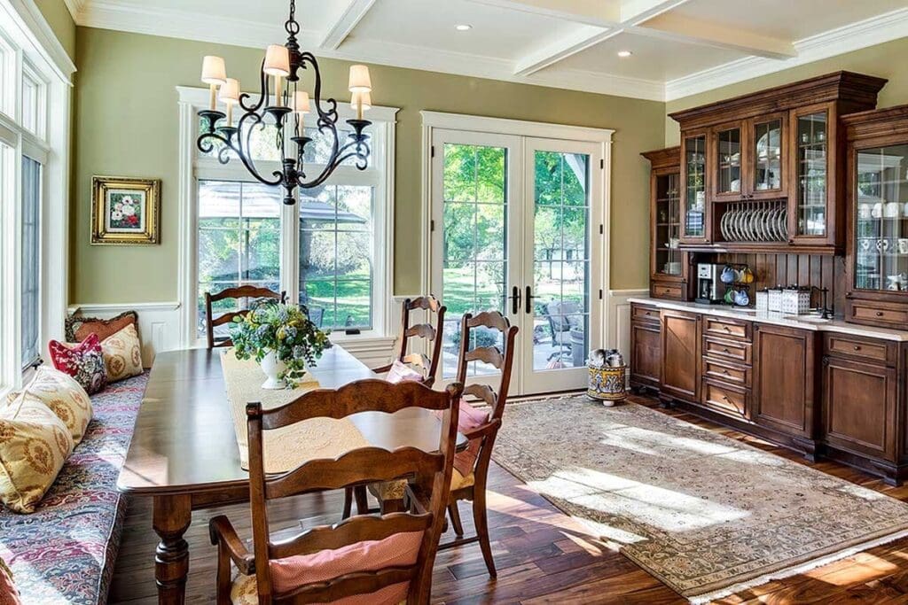 French doors and double doors lead to porches, connecting the indoor and outdoor spaces seamlessly.