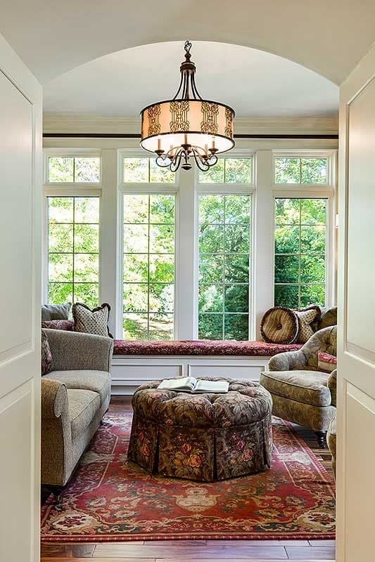 This room shows how the plan thoughtfully blends practical living with spaces for relaxation and focus.