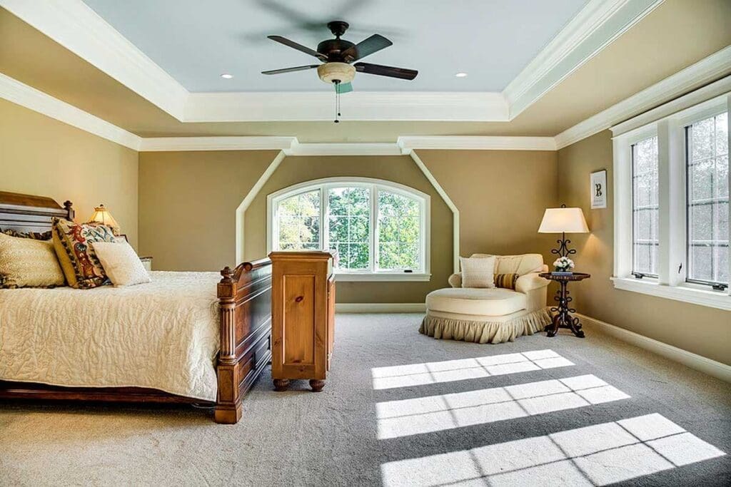 Now let’s talk about the master suite — your personal getaway at home. The bedroom features a tray ceiling that adds dimension and elegance, while the large windows invite sunlight to pour in.