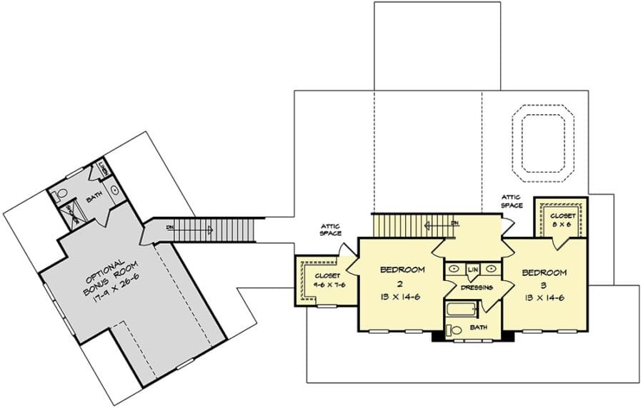 But let’s talk about that optional bonus room. It adds a whopping 556 sq. ft. of living space above the garage, complete with its own bathroom.
