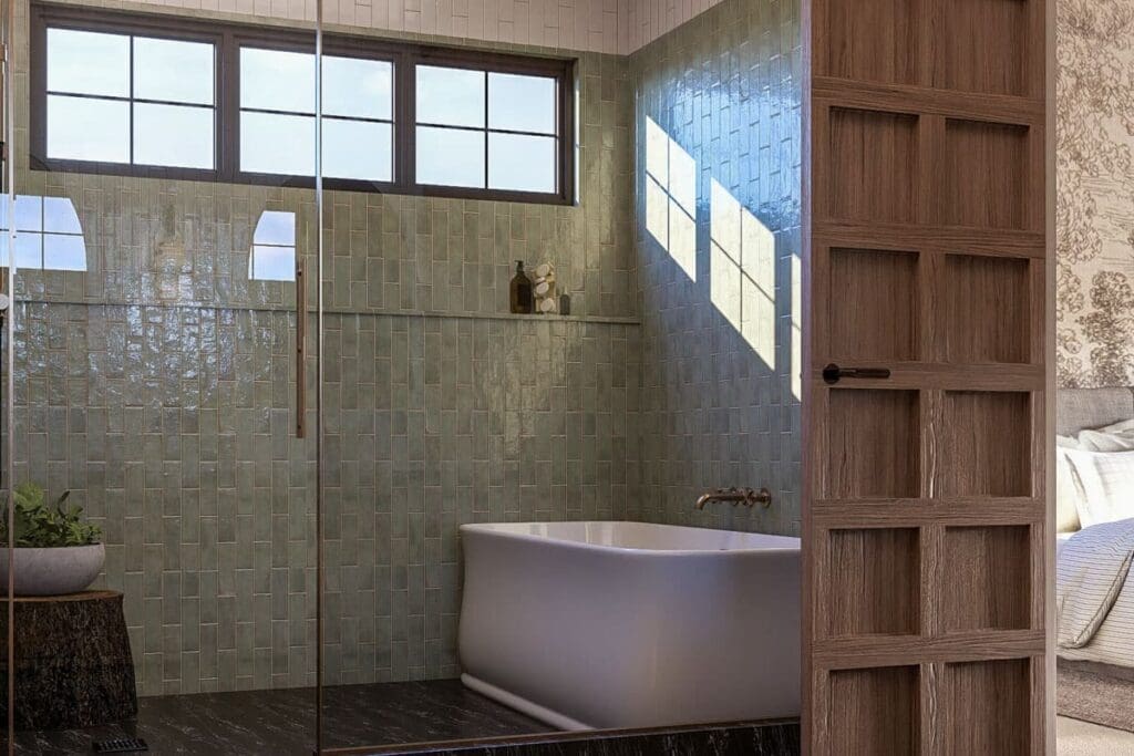 The tub-in-shower concept adds a modern, efficient touch, while still giving off resort vibes.
