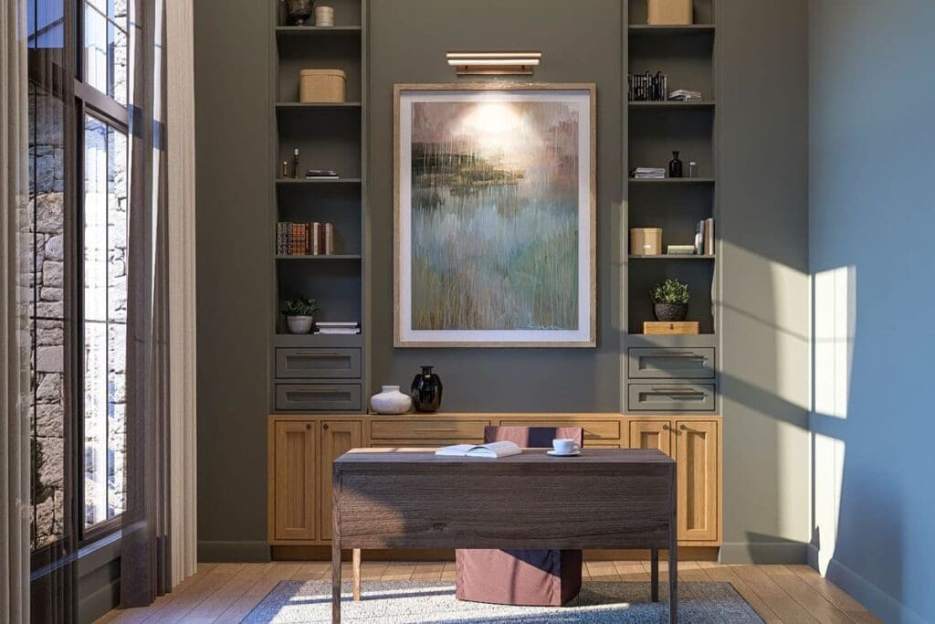 It’s easy to picture this office outfitted with the best home security system monitoring the property, smart home technology that controls lighting and blinds, and maybe even some stylish interior design software-inspired décor to keep you focused.