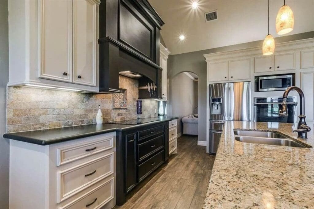 The 10-foot island is the star here — it’s big enough for meal prep, homework sessions, or even hosting an informal dinner.