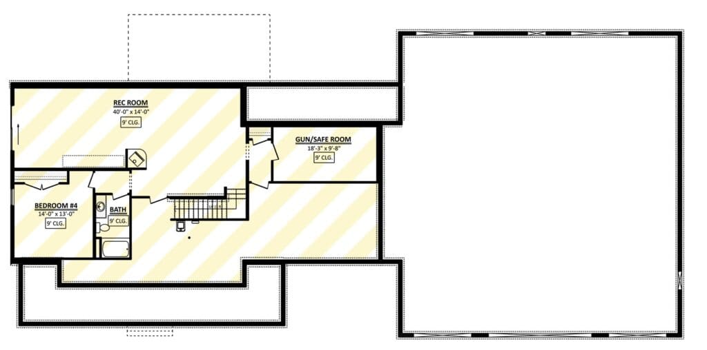 It includes a large rec room (hello movie nights), an additional bedroom with a full bath, a storage/mechanical room, and even a safe room.