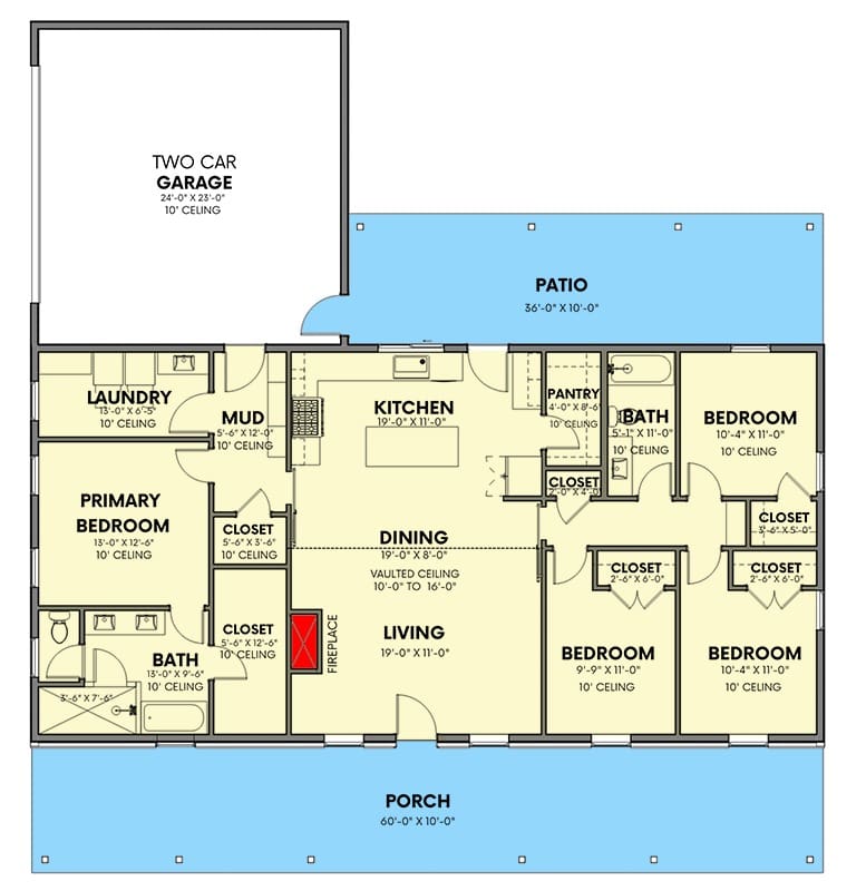 There’s something undeniably special about this house plan. Every bedroom has its own walk-in closet, the master suite exudes luxury, and the open layout makes living and entertaining effortless.