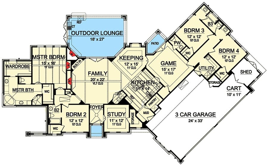 In short, this European house plan with an outdoor lounge combines luxury, comfort, and practicality in a way few homes manage.