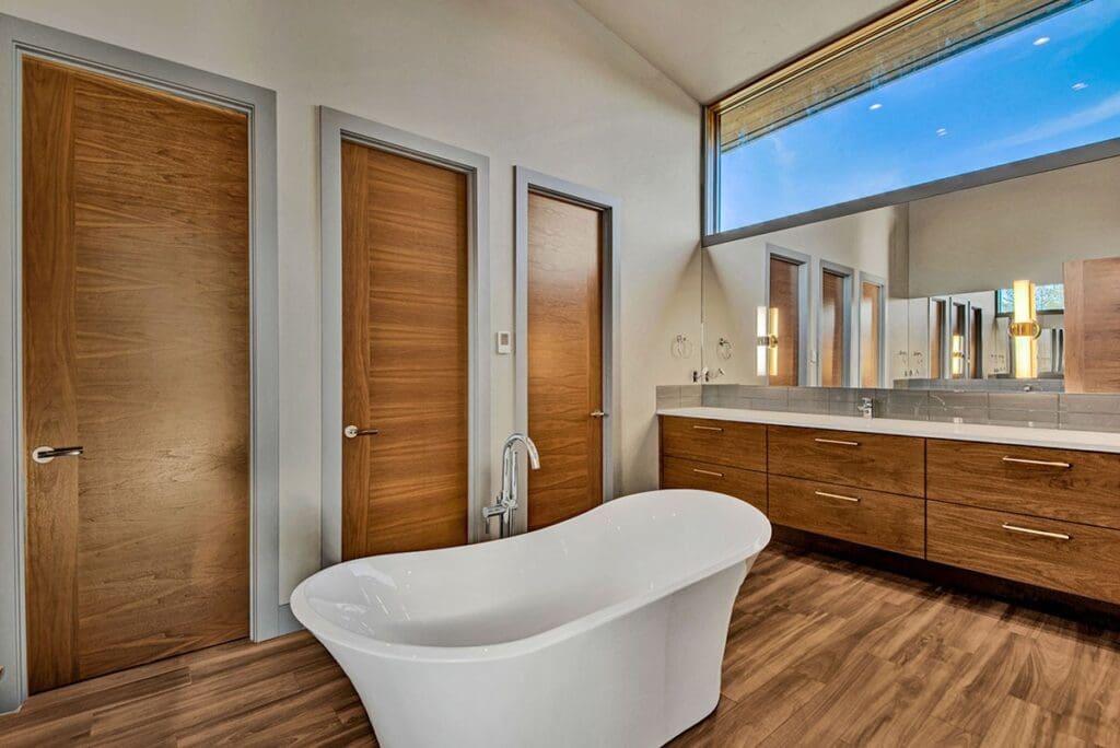 The master suite’s separation means no more tiptoeing around in the morning to avoid waking the kids.