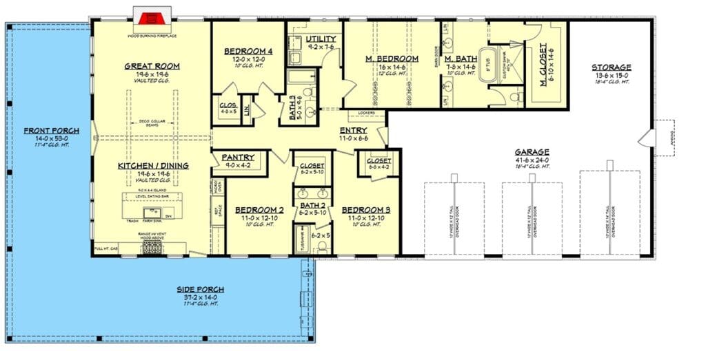 With four bedrooms, three bathrooms, a single-story layout, and a 3-car oversized garage, this design manages to be both stylish and sensible.