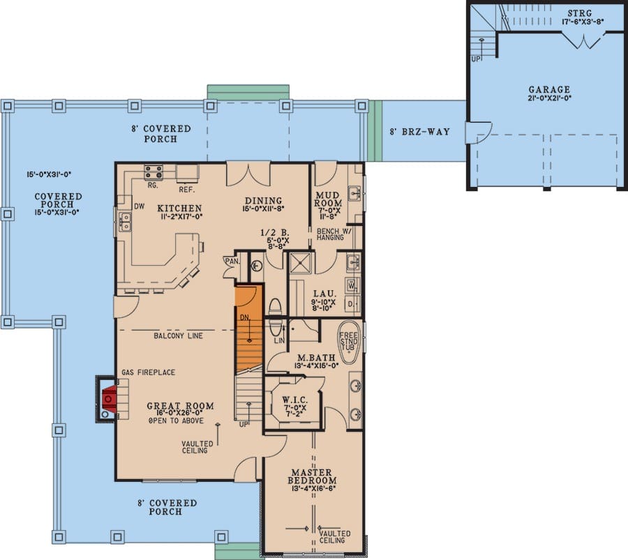 The maximum ridge height of 31 feet gives the exterior beautiful vertical balance, adding to that unmistakable craftsman character.