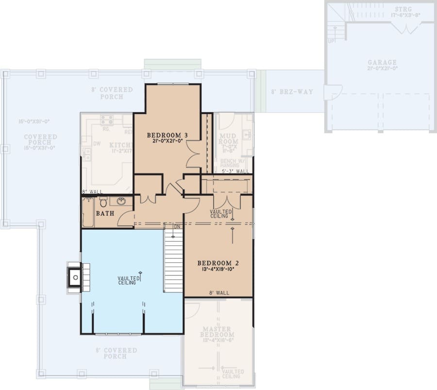 The front-facing entry makes access simple and straightforward, while the connection through the breezeway keeps the look cohesive.
