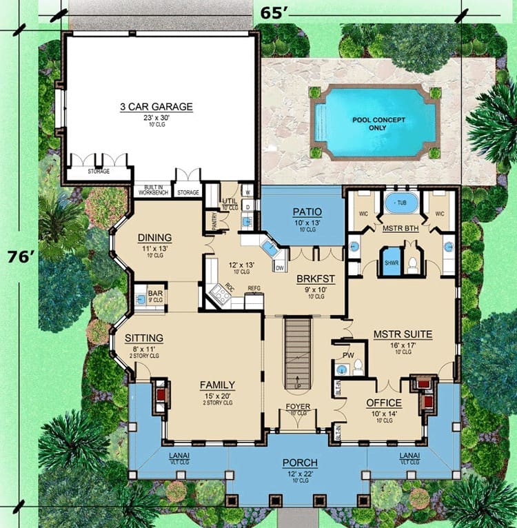From the moment you lay eyes on the stacked front porch and the oversized windows that practically wink at you, you know you’re dealing with more than just your average blueprint.