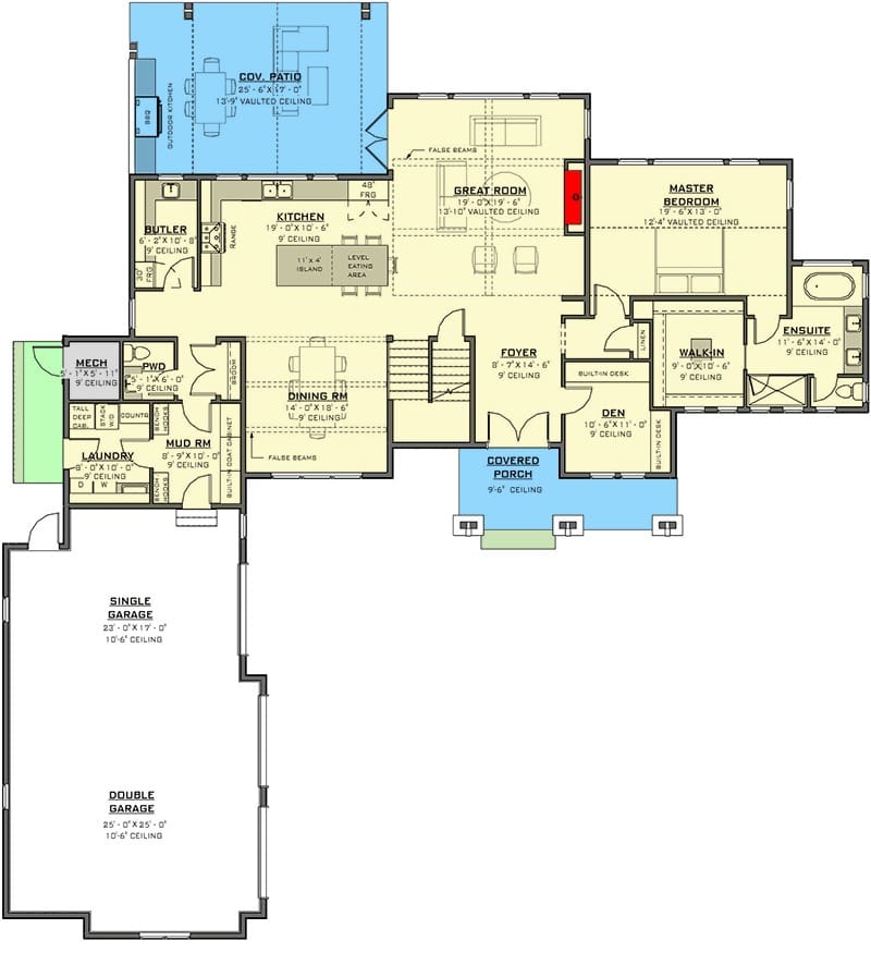 One of the standout features of this plan is the walls of glass along the back. Natural light floods the interior, creating a space that feels alive and connected to the outdoors.