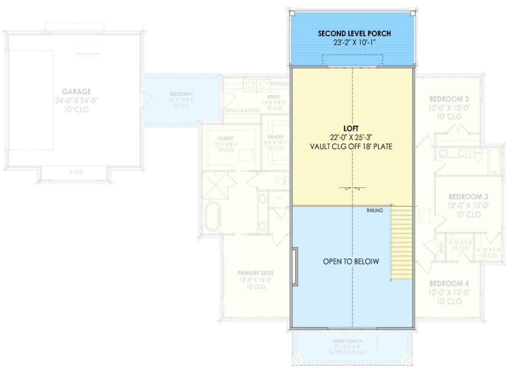 4-Bedroom 2-Story Farmhouse Plan with Loft Retreat and Rear Porch Living (Floor Plan)