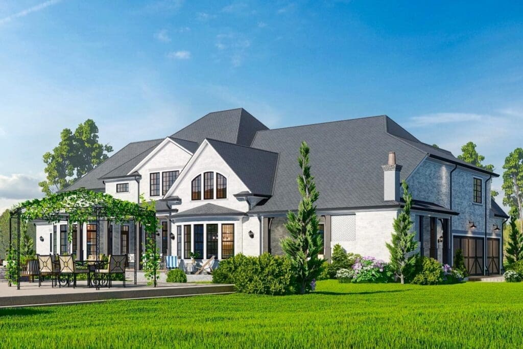 With four bedrooms, four and a half baths, and a three-car garage, this plan redefines luxury and functionality under one roof.