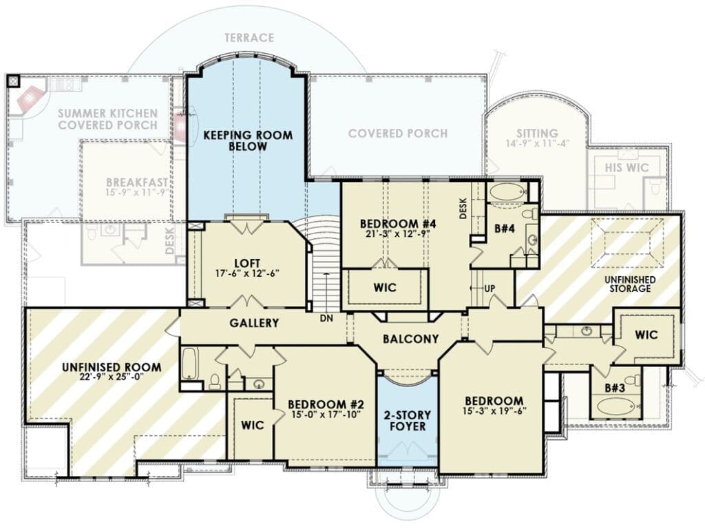 With stunning visual moments like the grand foyer, practical daily features like dual master bathrooms, and lifestyle enhancers like a summer kitchen, this floor plan doesn’t ask you to choose between beauty and function.