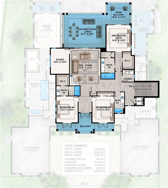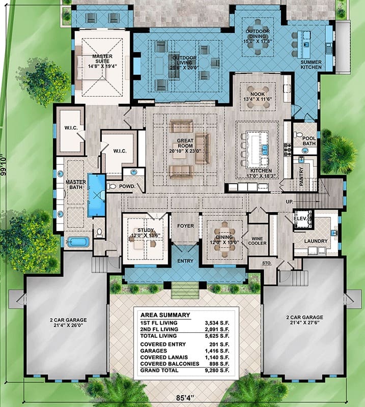 The outdoor spaces are nothing short of spectacular. Multiple patios, lanais, and a barbecue porch provide room for dining, entertaining, or simply soaking in the sunshine.