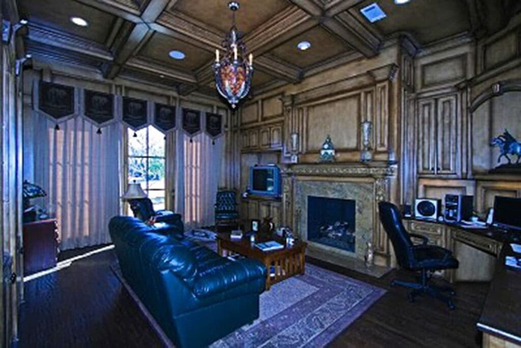 With tray ceilings adding dimension and a fireplace anchoring the room, it’s designed for productivity with a touch of luxury.