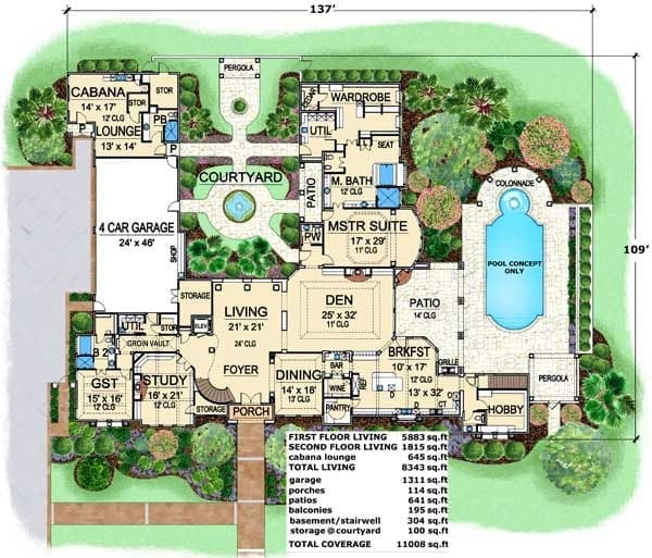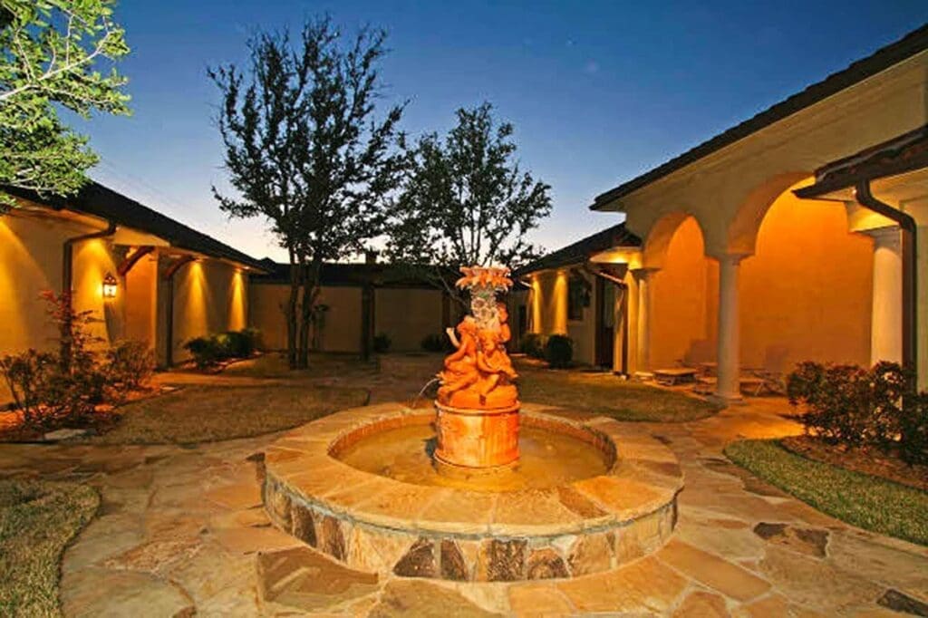 The plan begins with a huge interior courtyard—a feature that’s not only visually stunning but also cleverly functional.