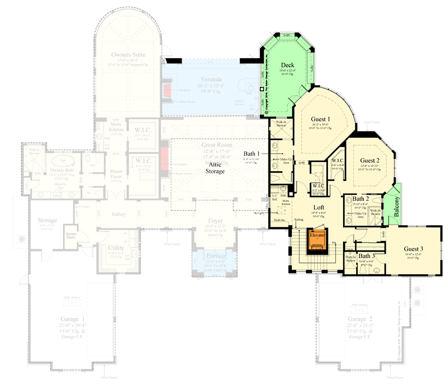 One of the standout aspects of this Mediterranean floor plan is the two-story veranda off the Great Room.