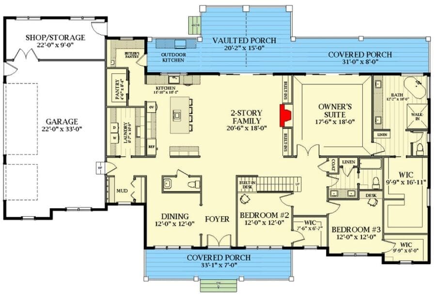 Two porches give you options: 235 square feet in the front and a generous 659 square feet in the rear.