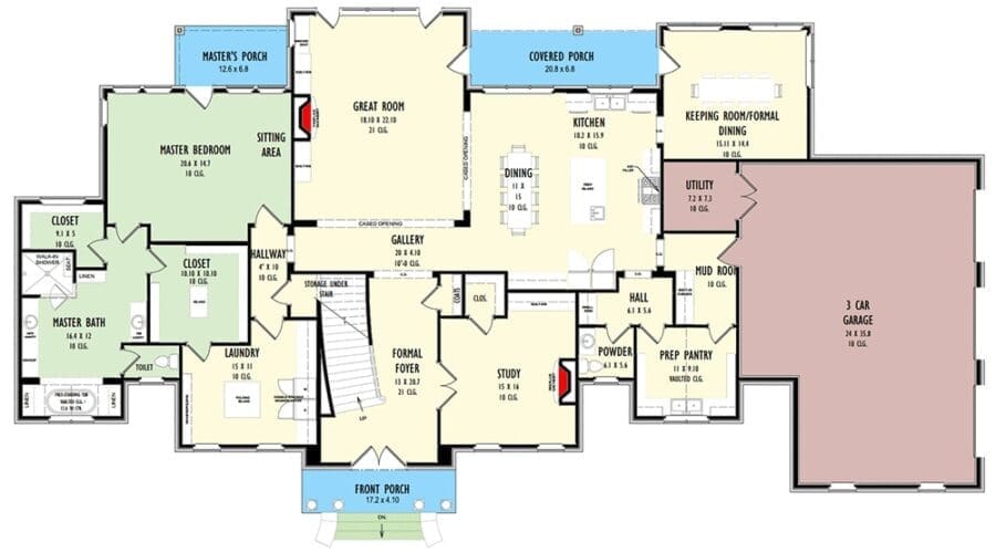 4-Bedroom 2-Story Southern Traditional House with 2-Story Great Room (Floor Plan)