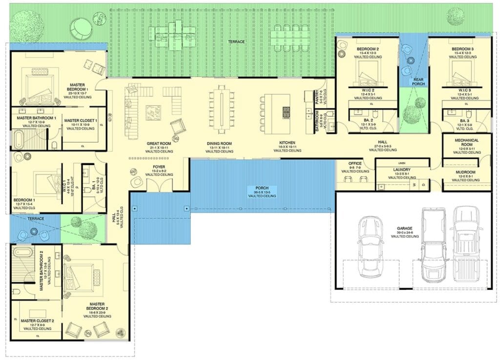 Here’s where this plan really flexes its muscles—two master suites.