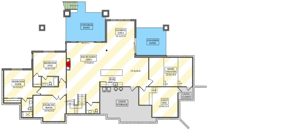 Here you’ll find a massive rec room (16’ x 20’3”) complete with a wet bar, a fitness room, and even a media room with vaulted ceilings.