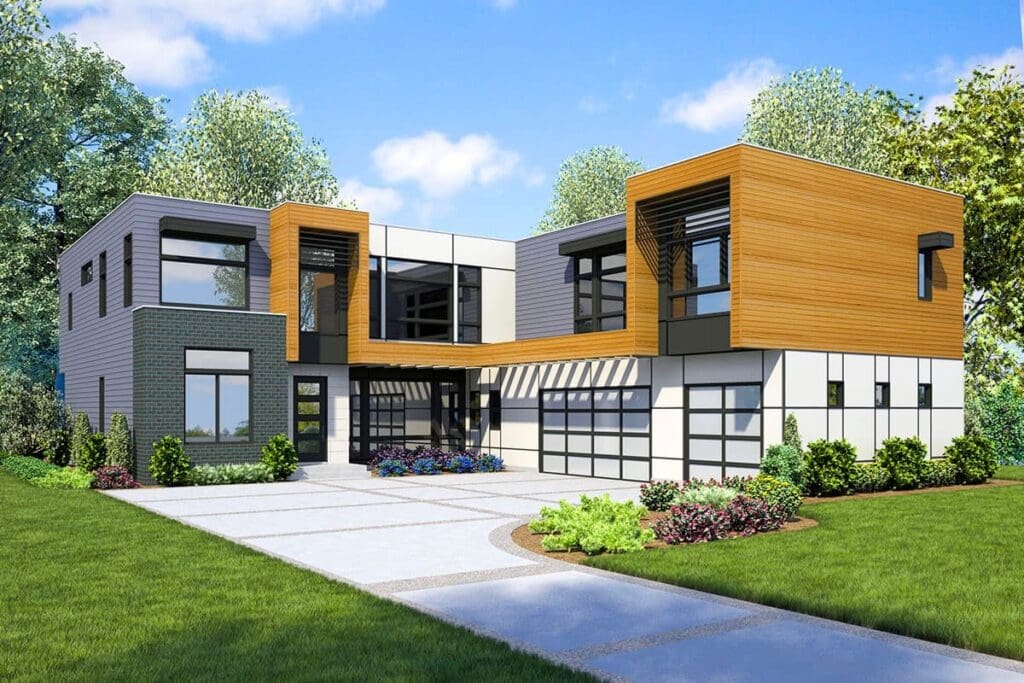 There’s something about the mix of clean lines, flat roofs, and an inviting L-shaped garage that just draws you in.