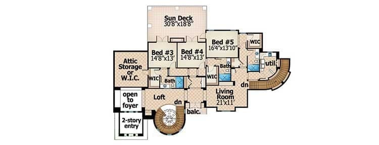 Each of the three upstairs bedrooms features a walk-in closet and direct access to the enormous outdoor sun deck.