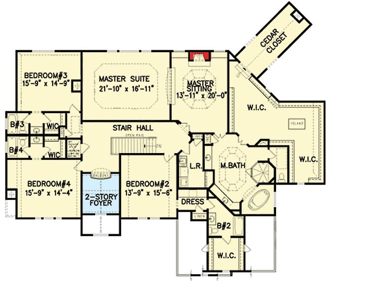 Now, if you’re like me, you want to enjoy cooking without feeling isolated. This plan has you covered—the kitchen island faces the family room, so you can chat with friends by the fireplace while you stir the pasta.