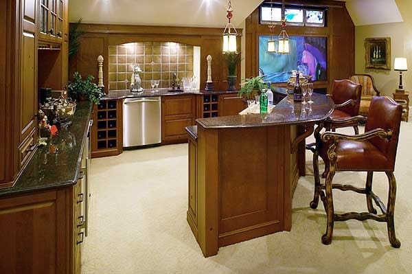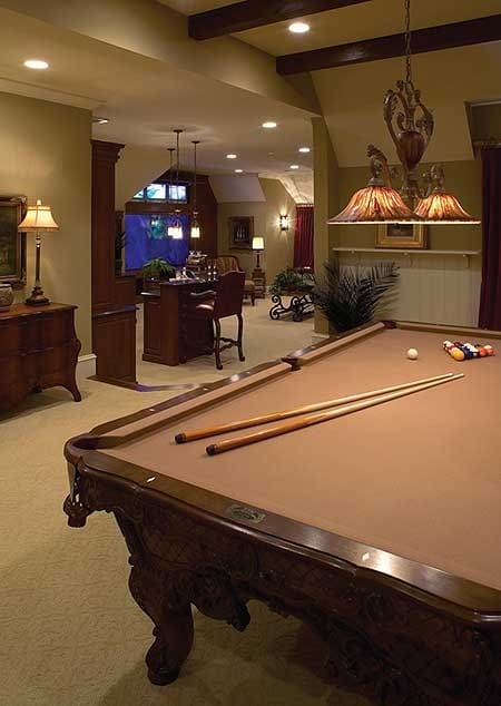 You’ve got room for reclining chairs, surround sound, and a built-in bar for snacks and drinks. Whether it’s family movie night or your favorite sports game, this room is pure entertainment gold.