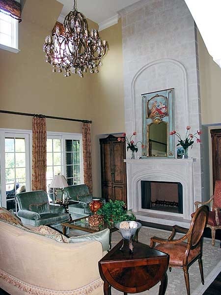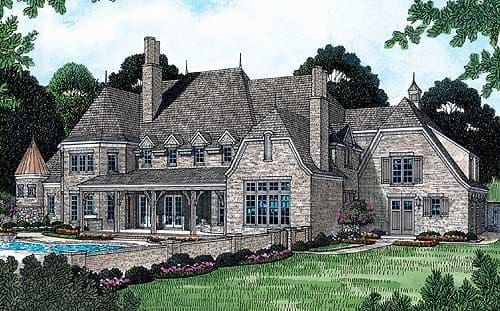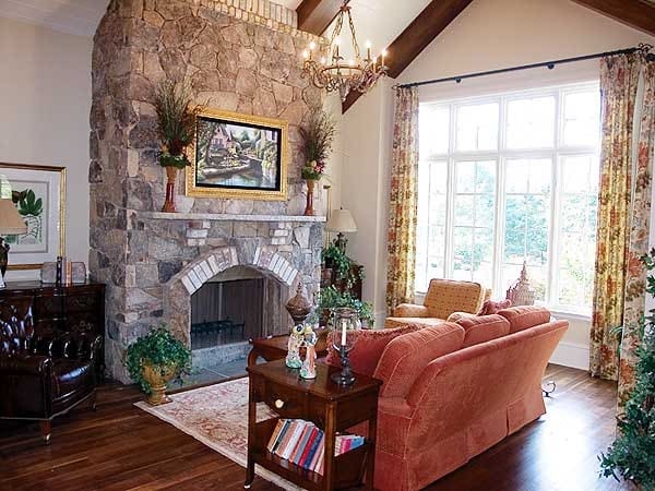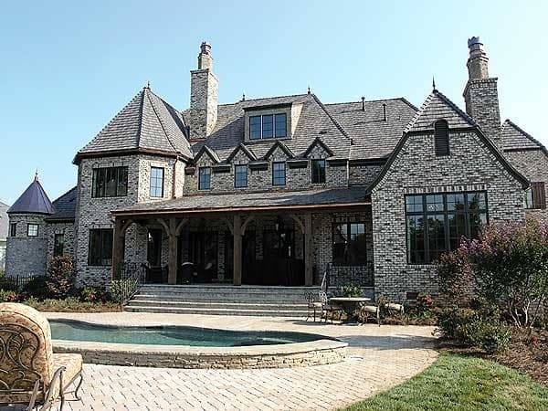 The brick with stone accents and the turret detail make it look like something out of a luxury magazine, but it’s still warm, welcoming, and totally livable.