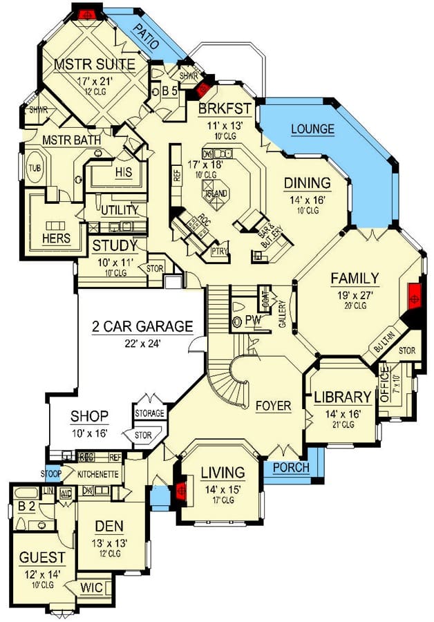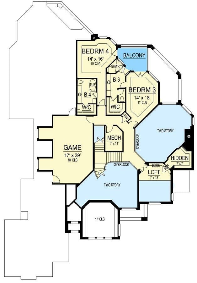 Every great house plan has a surprise, and this one does not disappoint—a hidden nook tucked behind a bookshelf above the library.