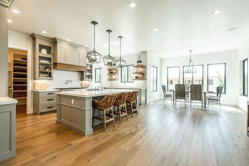 The great room, kitchen, and breakfast nook form the beating heart of the home.