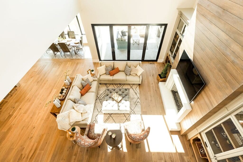 The great room includes a cozy fireplace—perfect for sipping something warm while you tell your guests about how smart your home is (more on that soon).