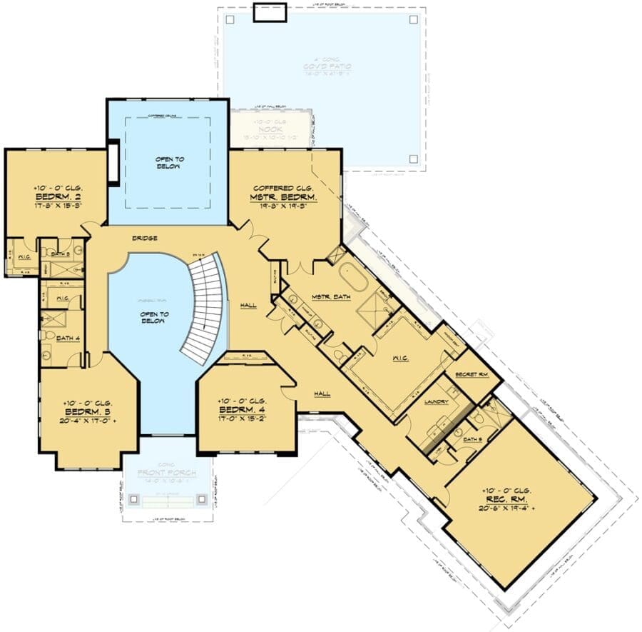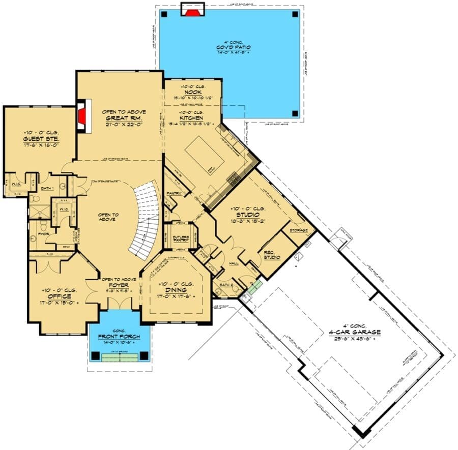 From the dramatic foyer to the angled 4-car garage, every part of this plan is thoughtfully crafted.