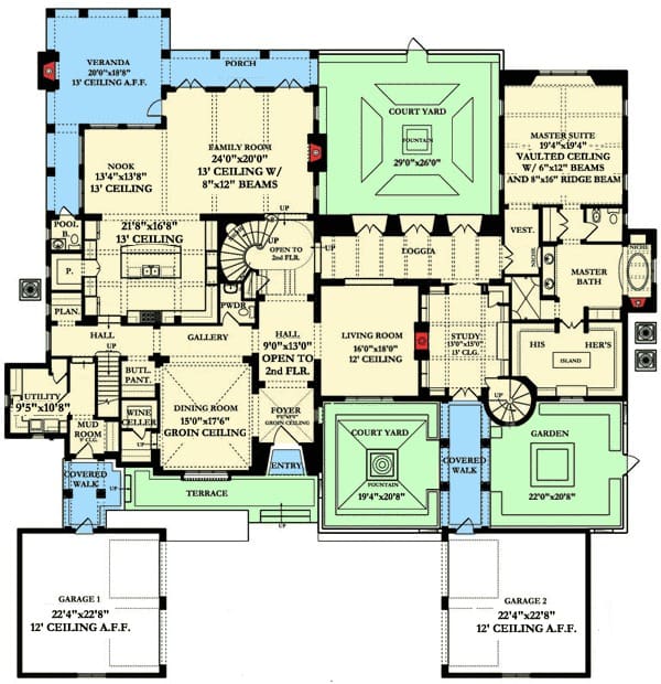 One of the things I admire most about this Spanish Colonial plan is how effortlessly it flows.