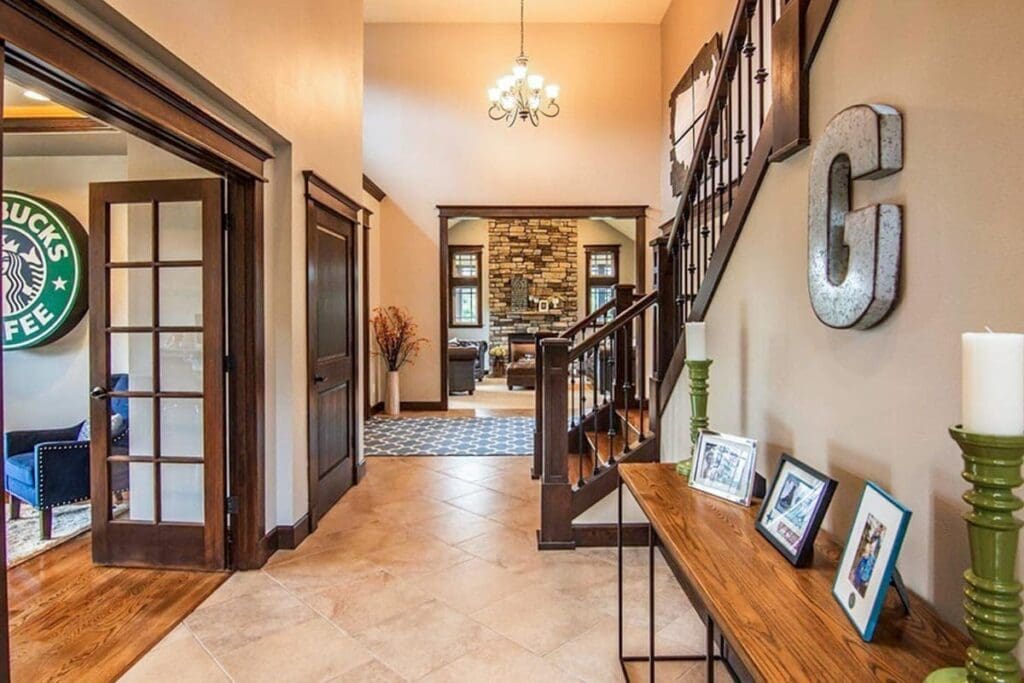 The dramatic balcony bridge overhead gives you a sneak peek into both the foyer and family room, creating a stunning visual connection between the two floors.