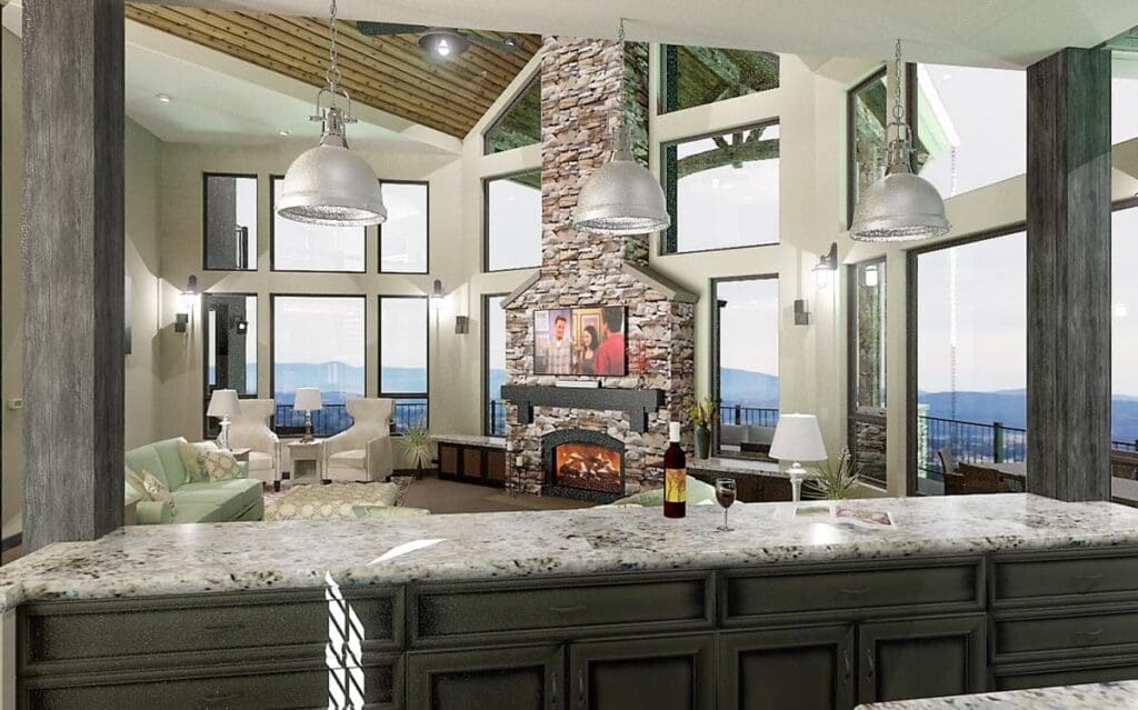 This great room offers exactly that—a two-story view that connects you to the outdoors even while you’re sipping cocoa inside.