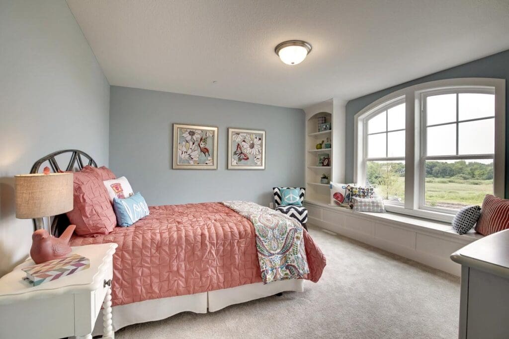 With vaulted ceilings and gorgeous windows, the room feels like a retreat.